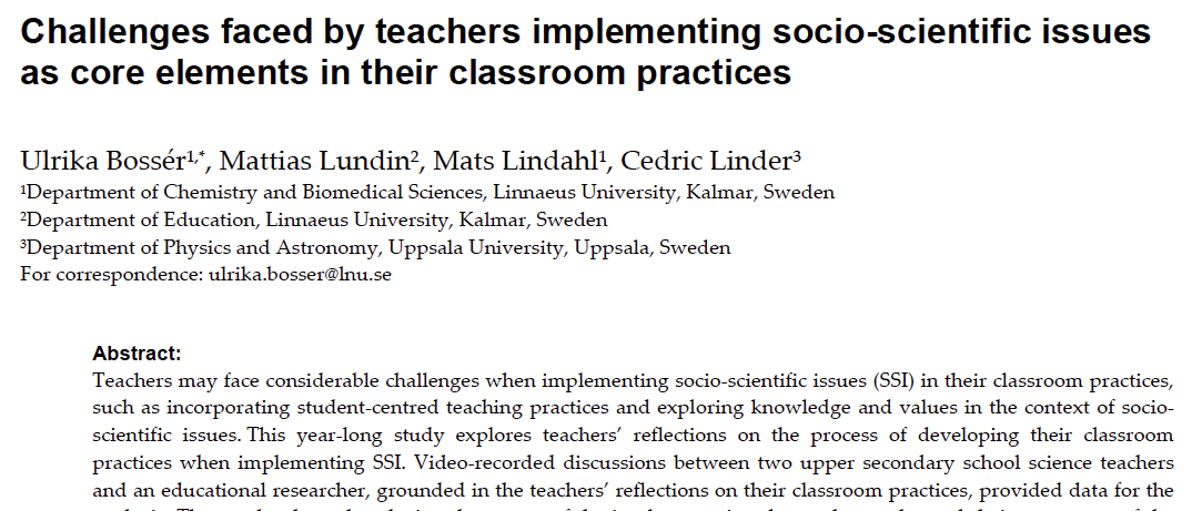 Challenges faced by teachers implementing socio-scientific issues as core elements in their classroom practices